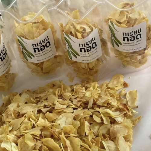 Made from premium GI Monthong durians from Rayong province, our chips are naturally fragrant, sweet, and creamy—100% from nature. Fried to golden perfection in fresh oil, then oven-baked to remove excess oil for lasting crispiness without any rancid smell. No flour, no additives, just pure durian goodness.