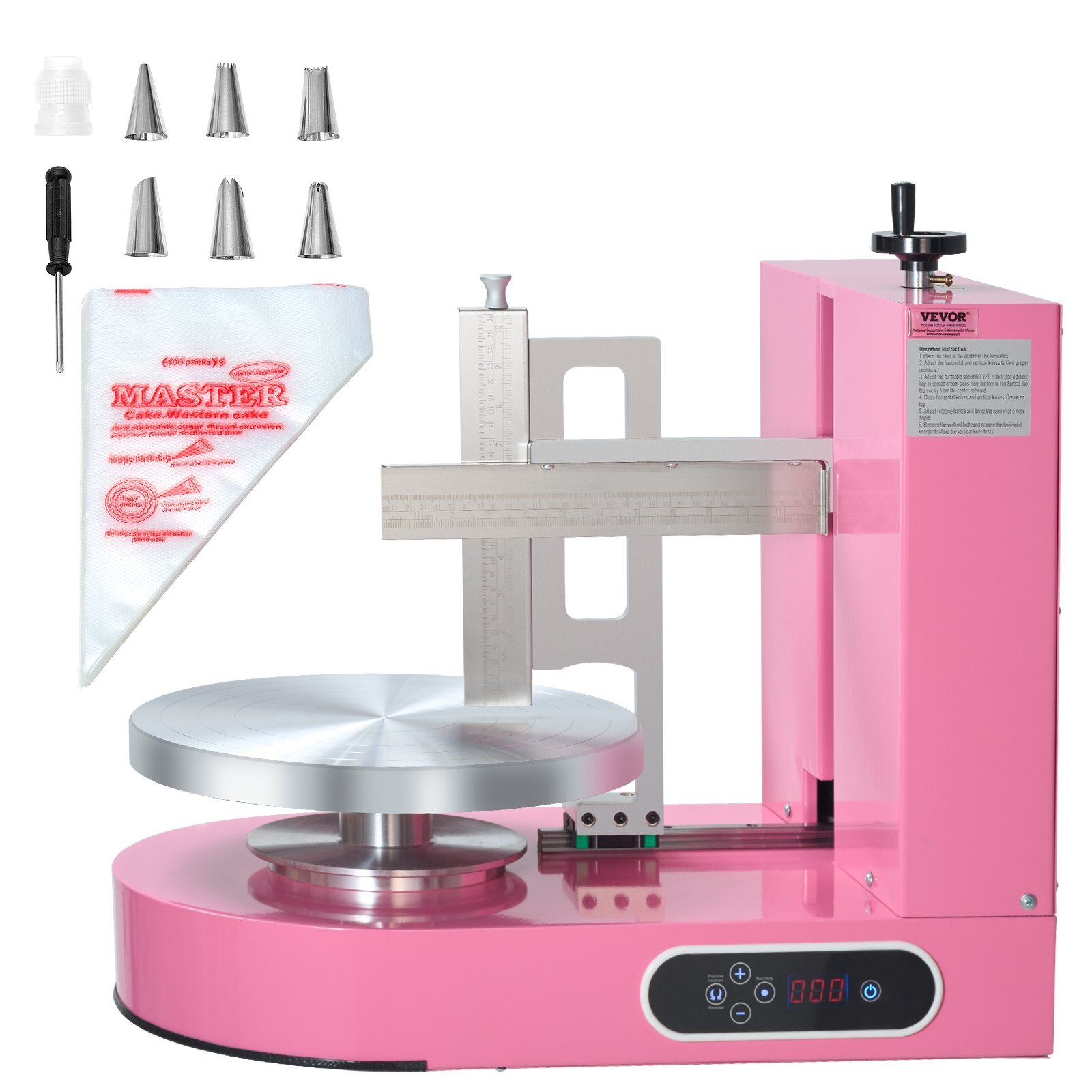 Voltage/Frequency: AC90-240V, 50Hz-60Hz,Compatible with Cake Sizes:6 to 14 Inches,Turntable Diameter: 14″/35 cm with ConcentricCircles,Color: Pink,Item Model Number: HBLSMMJ-0614,Maximum CakeHeight: 7.9″/20 cm,Product Dimensions (L x W x H): 23.62″ x 14.57″x 21.65″/600 x 370 x 550 mm,Net Weight: 49.82 lbs/22.6 kg