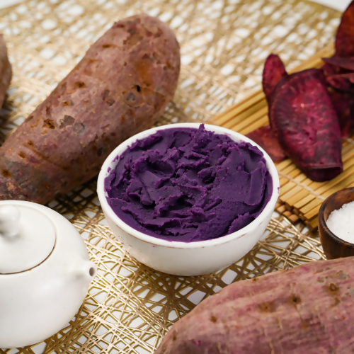 Buy frozen baked purple sweet potato paste. Perfect for desserts, buns, and more. Bulk orders available. Inquire today!